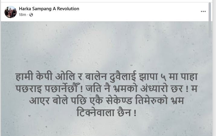 श्रम,संस्कृति पार्टीका अध्यक्ष हर्क साम्पाङले झापामा एमाले अध्यक्ष केपी शर्मा ओली र काठमाडौँ महानगर प्रमुख बालेन शाहलाई पछार्ने बताएका छन् ।