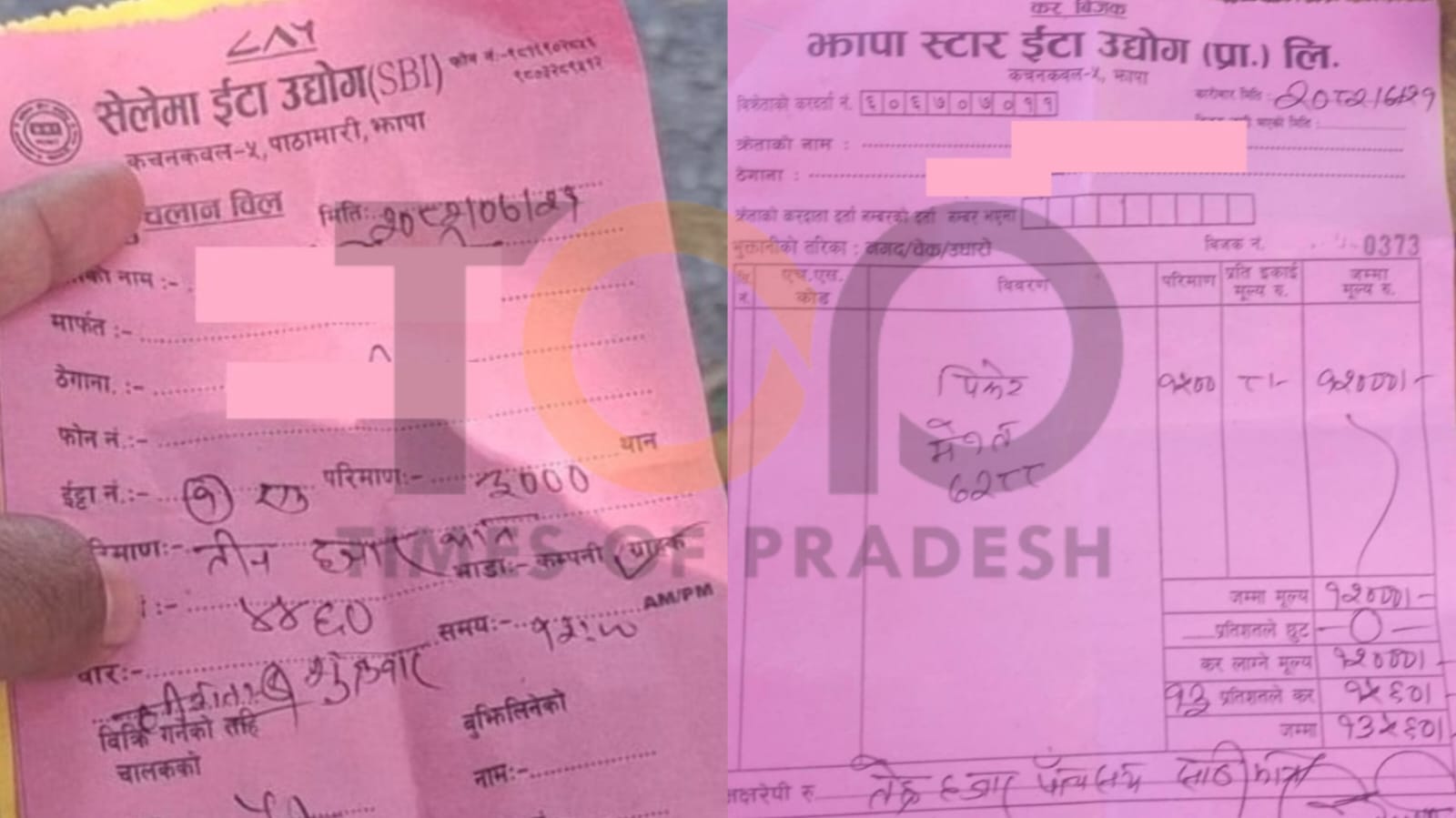 कचनकबल गाउँपालिका–५ पाठामारीस्थित सेलेमा इँटा उद्योग (एसबीआई)ले चलान बिल काटेर इँटा बेचिरहेको फेला परेको छ। भ्याट वा पान नम्बर नभएको उल्लेख नभएको एसबीआईको चलान बिलमा बिक्रेताको नाम, ठेगाना, इँटाको परिमाण र गाडी नम्बर उल्लेख छ। तर, इँटा मूल्य भने उल्लेख छैन।